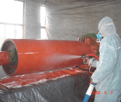 采用聚脲專用的高溫、高壓噴涂設備噴涂